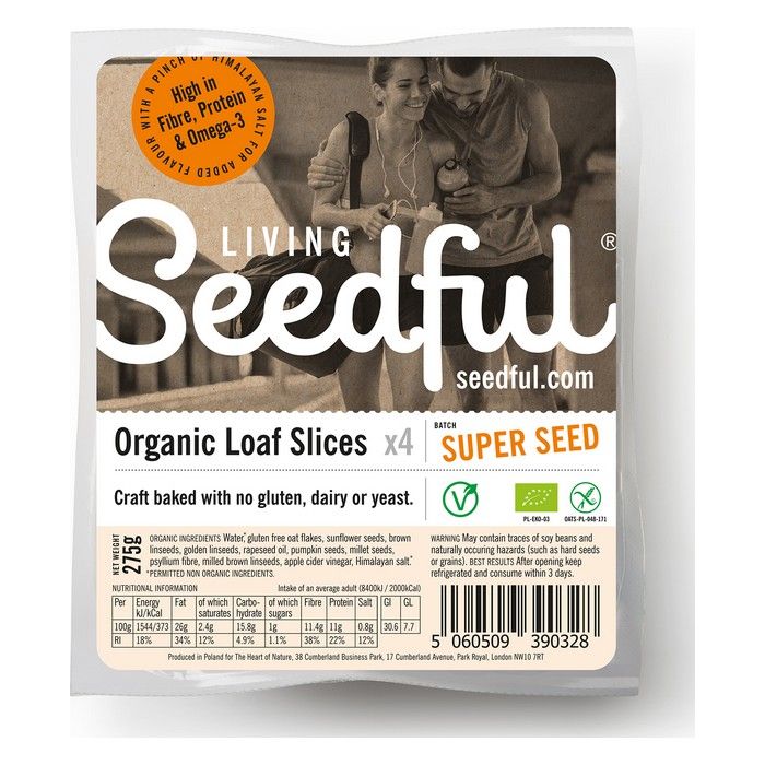 La marque Living Seedful est une gamme de pains uniques sans farine, riches en fibres et remplis de graines et de grains entiers. Le pain est cuit sans farine et sans levain, y compris la levure.